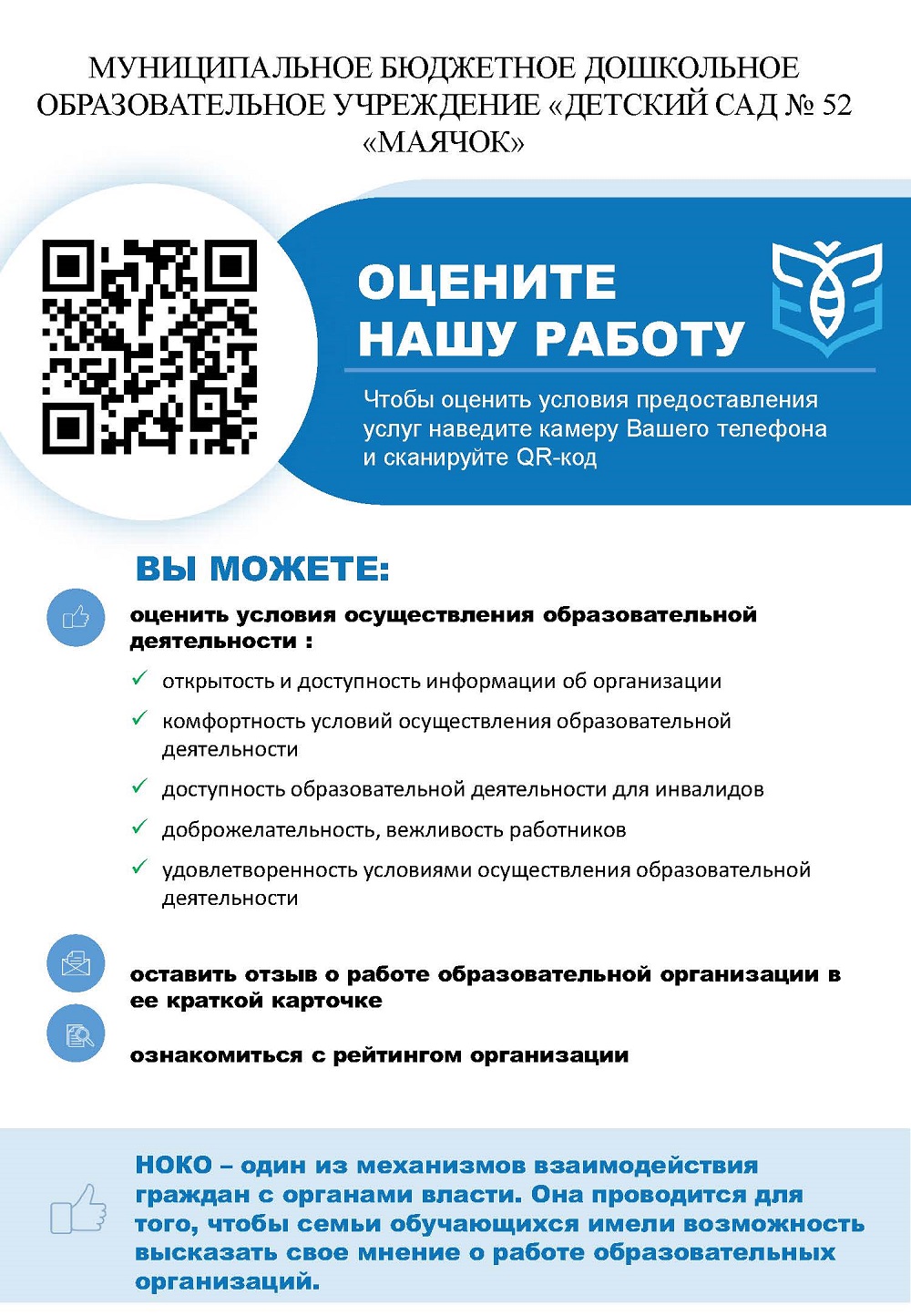 - Результаты независимой оценки качества условий осуществления образовательной деятельности МБДОУ «Детский сад № 52 «Маячок» по итогам 2022 года